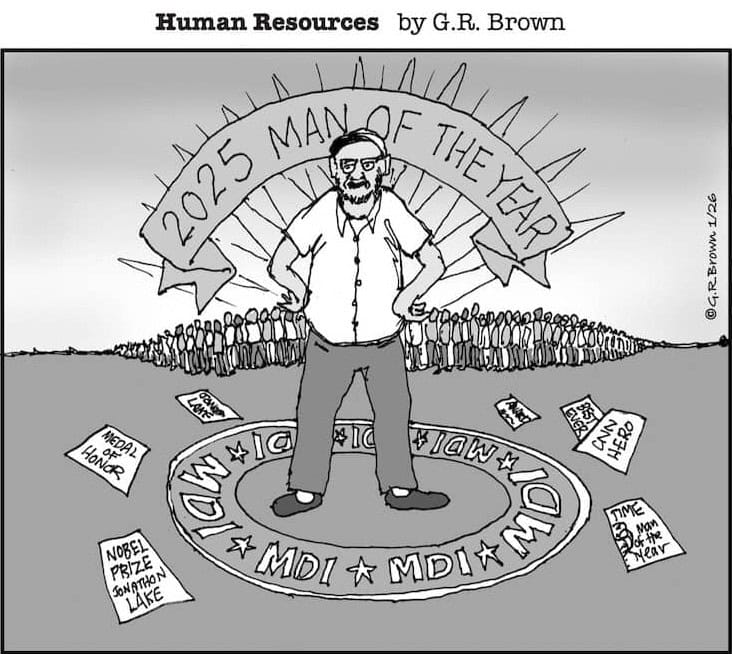 So, Happy New Year but, before you shut and fasten the door on 2025, we hope you’ll enjoy this sampling from our fantastic and committed contributors, columnists, and cartoonists, all of whom labored diligently on your behalf last year.