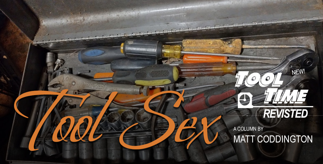 Tools, home repair, lawn equipment, and other stuff men love. Going forward our resident fix-it guy, Matt Coddington, takes on all things DIY. Going forward send your Honey-Do questions to [email protected] and Matt will answer them in our next issue. Meanwhile, his maiden column tells of three amorous tools getting it on with some two-by-fours. Riveting, indeed.