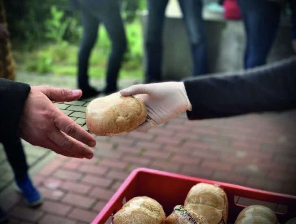(Lazarus). In Poznań, Lazarus has not yet been wakened from the dead. The area where we serve belongs to the railroad company and is enclosed with a security fence, sealed off with a reinforced gate that is locked. It is supposed to be unlocked when we arrive, but twice it has not been. Jacek, the fixer, calls the police station next to the train station. Someone comes out and, rather grumpily, opens the gate. We then quickly set up and start serving. It all goes exceptionally smoothly.